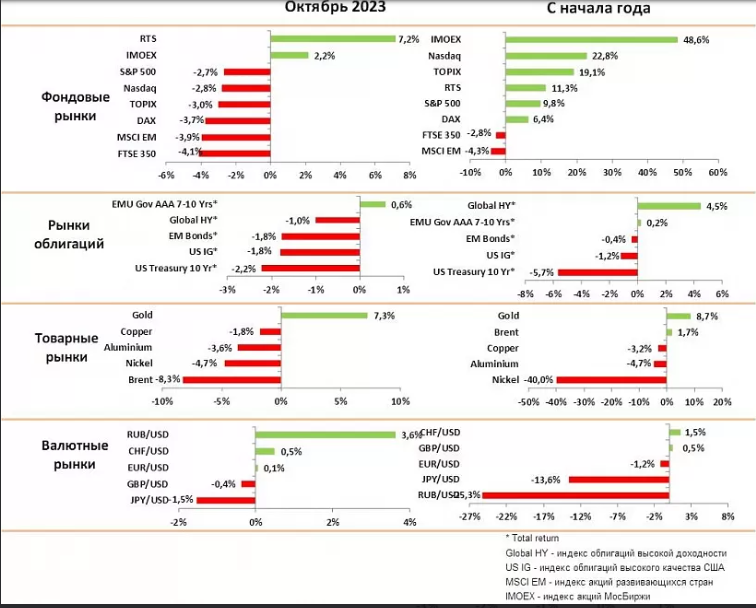 In October, both equities and bonds continued to decline in major markets amid hawkish comments from central banks and fears of a full-scale war in the Middle East.